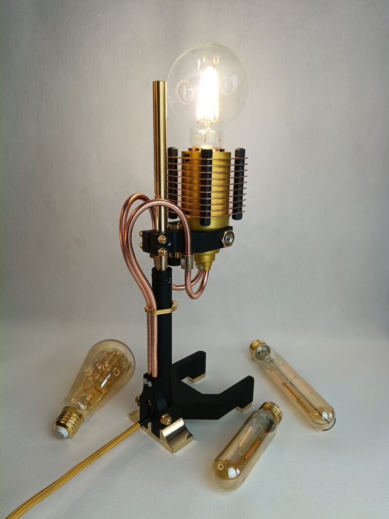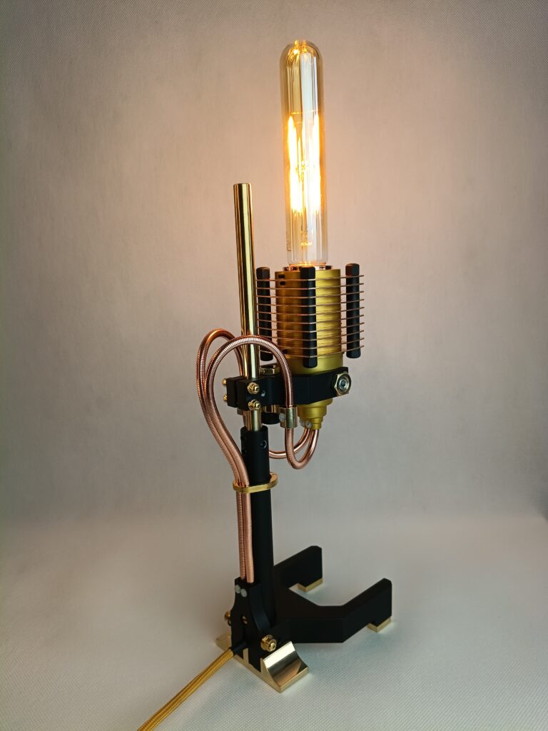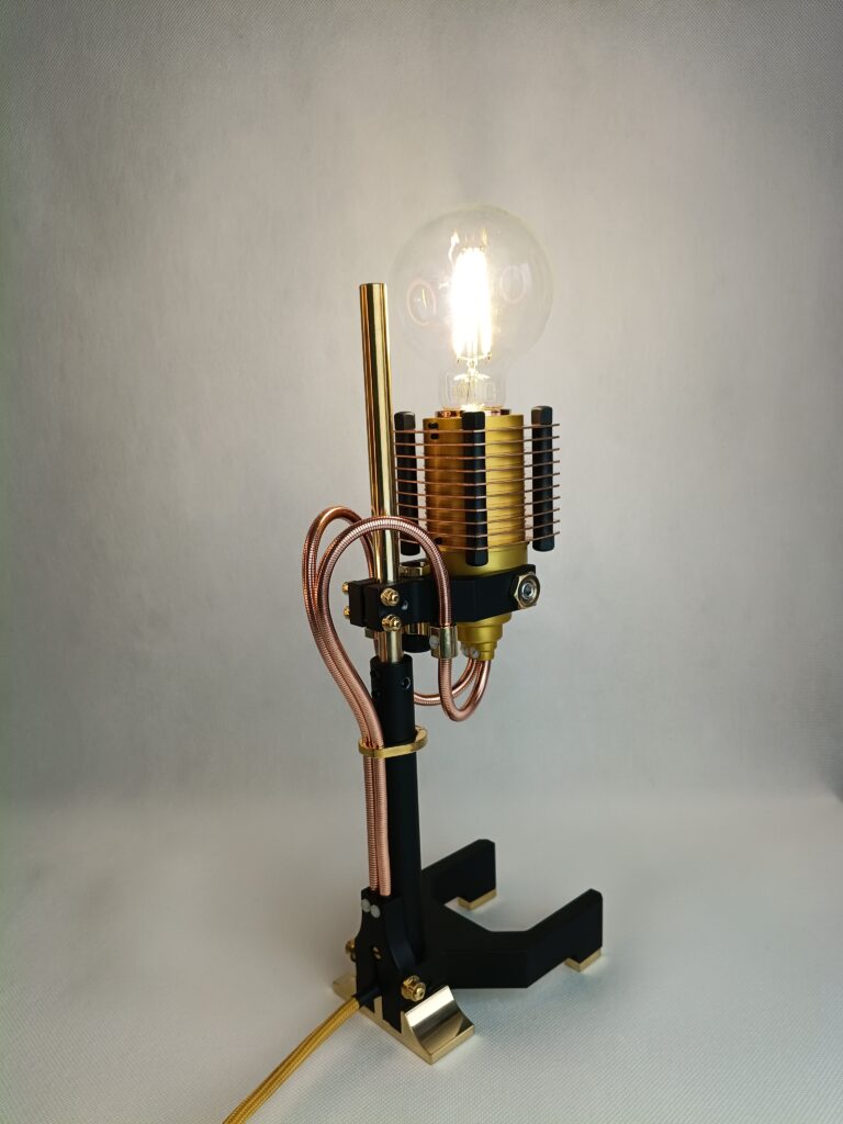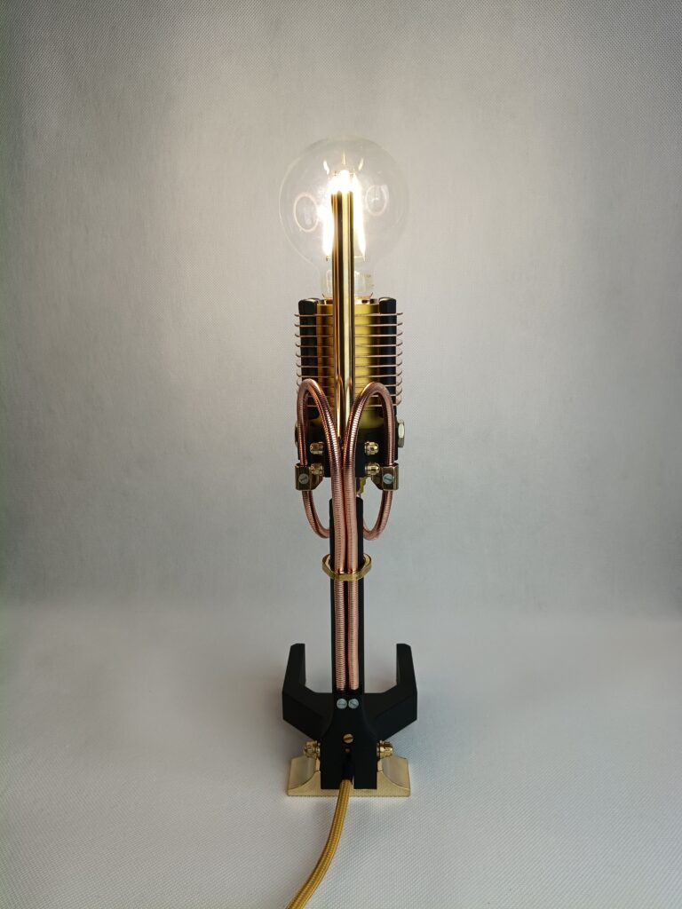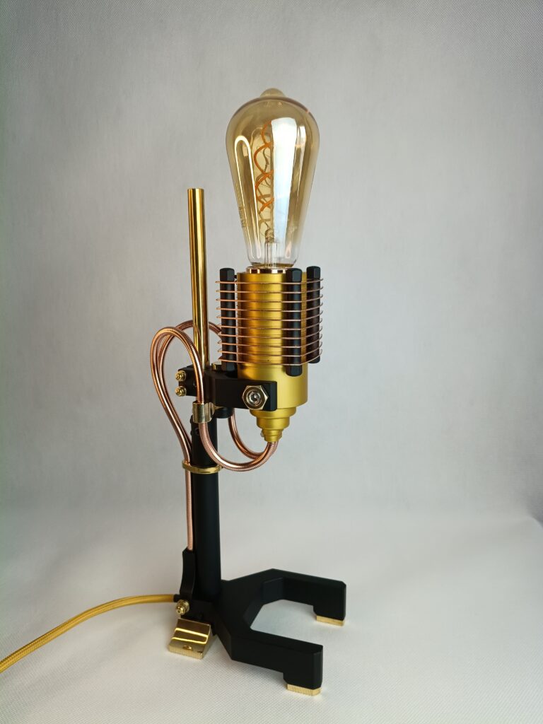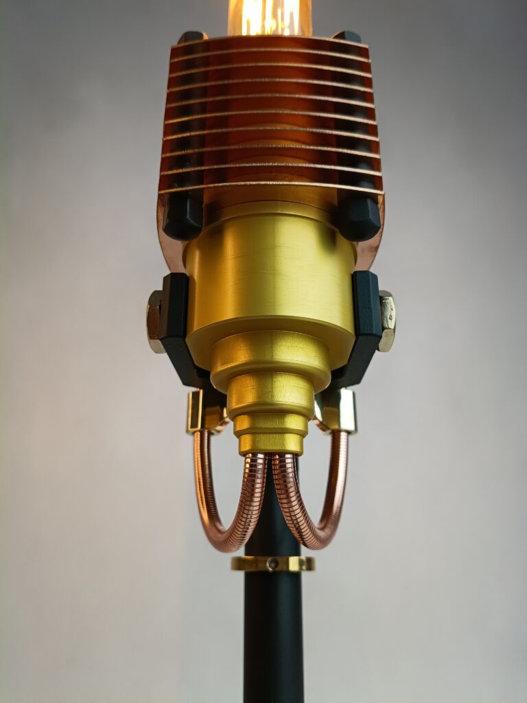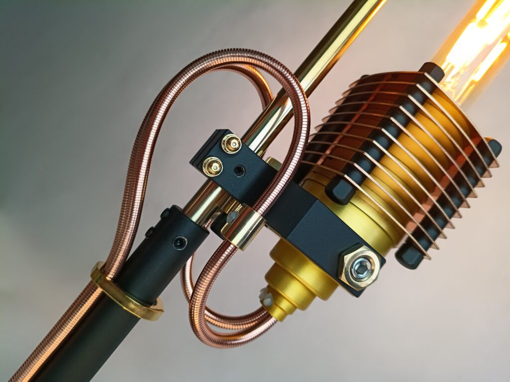 Poznaj efekt długiego procesu projektowania. Każdy element został starannie przemyślany i wykonany. Połączenie różnych materiałów, takich jak szlachetna miedź i polerowany mosiądz, anodowane aluminium oraz lakierowana stal. Unikalny design. Wyjątkowe przewody, poprowadzone w oryginalny sposób. Ciekawe, designerskie detale przykuwają oko.